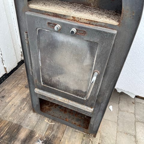 Se bilder, peisen kan demonteres i flere deler. Mangler 1 stk brennsten