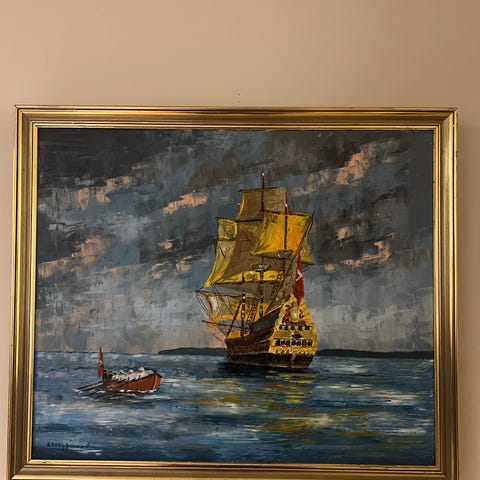 Et fint maritimt maleri selges rimelig.