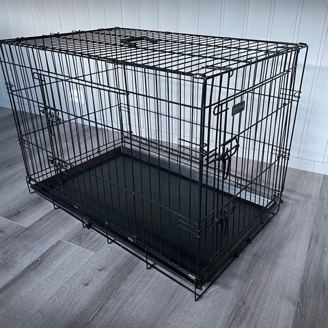 Selger vårt hundebur da det ikke blir brukt lengre. Buret ble kjøpt høsten 2024 på Europris, og har ikke blitt brukt. Lett og pakke sammen.