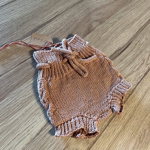 Hjemmestrikket, ubrukt bleiebukse strikket i myk merinoull, str 2-4 mnd