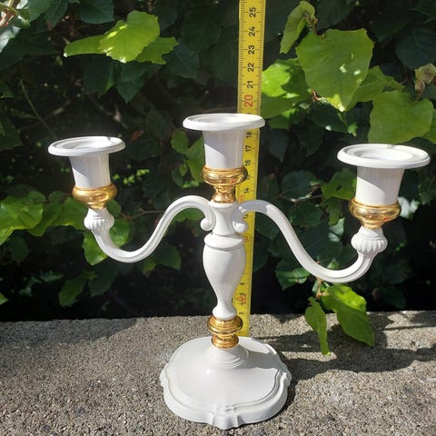 5 stk gullfargede lysestaker til salgs. Kun brukt en gang, nylig i en konfirmasjon.