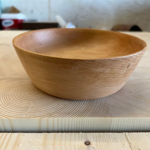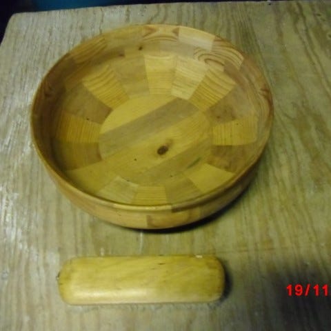 Trebolle. Ikke brukt. Stått i et skap. Diameter øverst 19cm. Høyde 6cm.