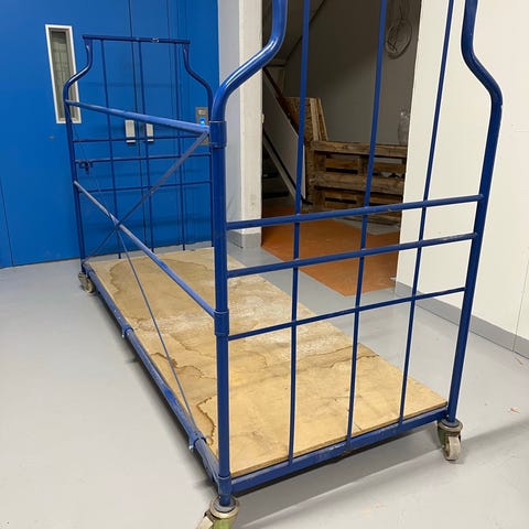 Kraftig transportvogn for glass, plater, dører, vinduer eller andre store emner.