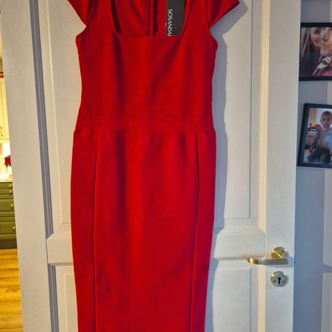 Nydelig, klassisk og tidløs kjole fra kvalitetsmerke Lynne, str. S. Smal modell. Rød med smale sorte diskret striper i stoffet. Veldig pen rundt halsen. Skjult glidelås hele veien ned bak. Stødig kvalitetsstoff. Kjøpt i Barcelona for ca 2500.-. Aldri brukt. Kan sendes. Kjøper betaler frakt.