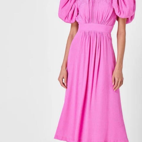 Penkjole i viskose fra merket «Joelle». Størrelse S men opplever den som luftig i størrelsen. Lukkes med glidelås på siden og knapp i nakken.