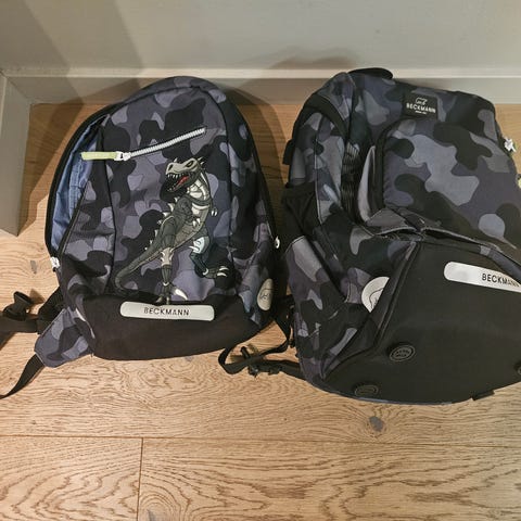 Selger en pakke med skolesekk og liten ryggsekk som kan henges på skolesekken. Fin til ekstra tursekk/svømmetøy