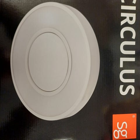 Hvit circulus taklampe fra sg armaturen selges da den aldri ble montert. Stilig lampe som gir godt lys og er dimbar, behagelig lysfarge på 2700k.