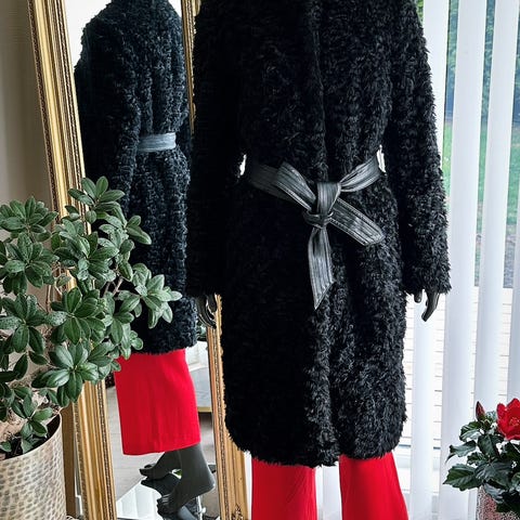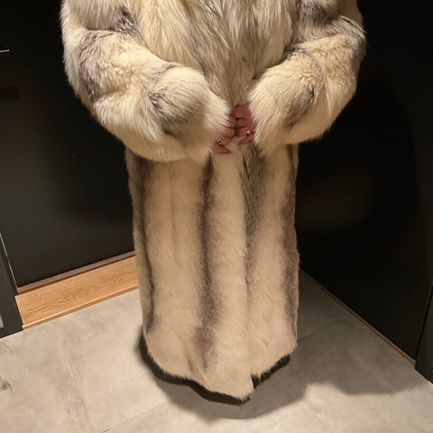 Pen forverkskåpe , Brun mink på innsiden ,kantet med grå Saga Fox.. EKTE PELS