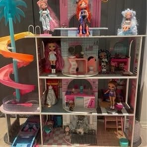 Pent brukt L.O.L dukkehus med møbler selges. Veggene på midten kan snurres rundt.