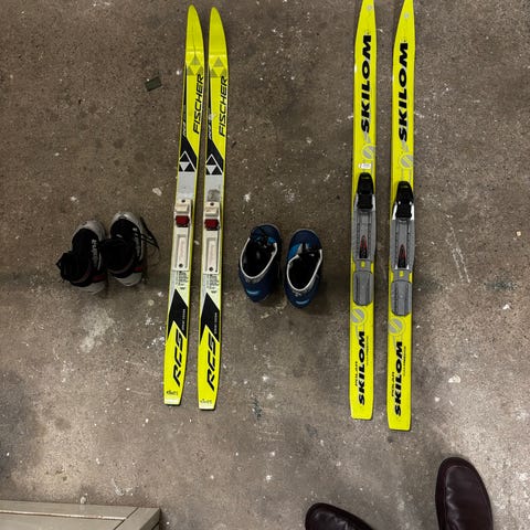 Veldig pent brukte ski og skisko. Varme og myke skisko med god støtte. Smørefrie ski. Solide og fine med massevis av bruk igjen! Selges samlet for 300 kr.