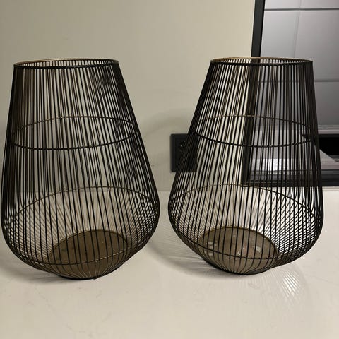 Selger disse to store lyktene fra Home & Cottage. De er sølvfarget og har en diameter på 21 cm og høyde 27 cm. Selges samlet for 200 kr. for begge