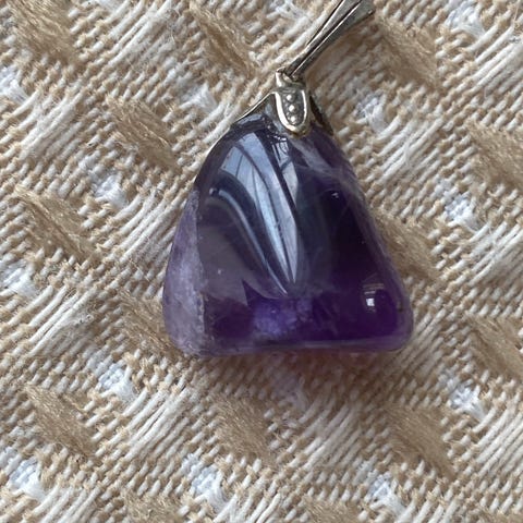 Selger ett flott anheng med slipt ametyst sten, CZ sten og satt i 925 Sterling sølv. Super stand!
