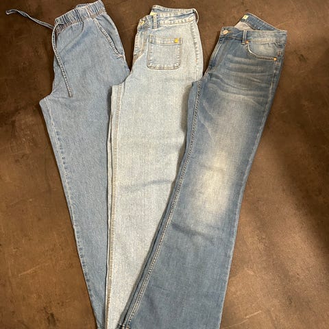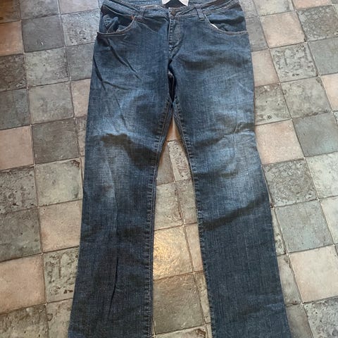 Tøff jeans i kraftig bomull str 44 - brune sømmer selges 400kr + porto.
