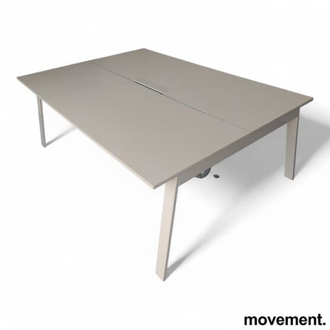 Bordet har et minimalistisk design og er utstyrt med kabelluker og en brønn under bordet for praktisk kabelhåndtering, noe som sikrer et ryddig arbeidsområde.