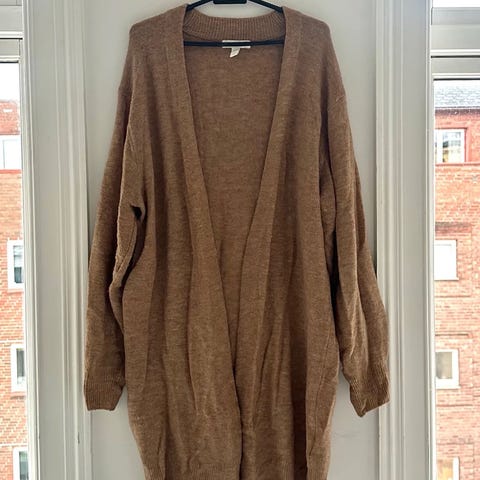 Størrelse: Small. Er true to size, men kanskje litt stor i størrelsen. Den passer også på en størrelse Large, men da er den veldig tettsittende og croppet til midjelengde. Så tror den sitter vanlig og litt mer ledig på en størrelse Small. Anbefales til en small eller medium.