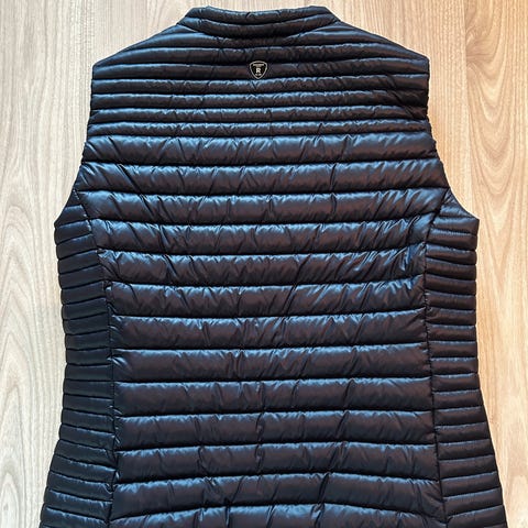Pent og lite brukt dunvest fra b.young The collection. Lett og behagelig med glidelåslommer i sidene og svarte detaljer.