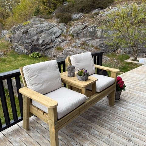 Perfekt utebenk til terrassen, brygga eller rundt bålet i impregnert treverk