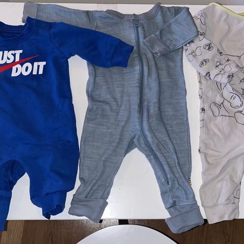 Lilleba nattdrakter i str 56 og 62. Pent brukt til ett barn, kjøpt nytt. Ingen røyk eller dyr. Noe bruksmerke på ene nattdrakten, se bilde.