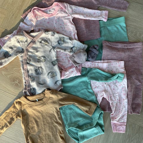Pakke med 3 bodyer og én bukse selges fint brukt. Stripete body fra #hust&claire, leopard #nameit og lilla sett fra #refleks. Settet ser veldig misfarget ut på bildene men det stemmer ikke 😊