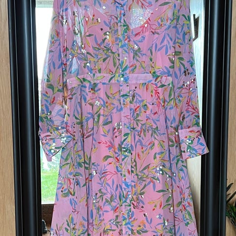 Denne kjolen er et vakkert og stilig valg for enhver anledning. Den har en flatterende passform og et vakkert blomstertrykk. Kjolen er laget av et lett og komfortabelt stoff, noe som gjør den perfekt for varmt vær. Den er også veldig allsidig og kan styles opp eller ned.