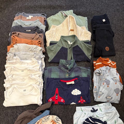 Variert klespakke til gutt i størrelse 74. Klærne er pent brukt og har ingen bruksmerker. Det er klær fra merker som C&A, Obaibi og Cubus. Pakken inneholder: