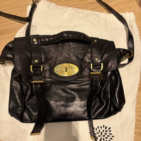 Eldre modell,brukt av min mor. Har noen bruksmerker, spesielt på hardware, men skinnet er helt og fint, og foret inni er helt og i god stand. Kan bæres som crossover, skulderveske eller håndveske.