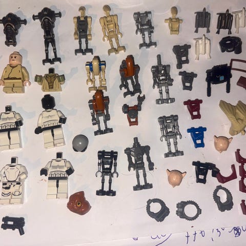 Lego minifigurer deler selges samlet.