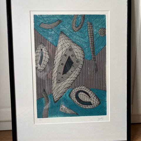 Det Blå Kjøkken - Ludvig Karsten print i veldig fin svart treramme fra T Midgaard & Co AS i Skien.
