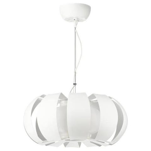 Stilren og klassisk design, kjøpt på IKEA for ca 10 år siden, men bare vært i bruk i få år. Perfekt over sofabord eller spisebord. Følger med dimbar pære. Diameteren er 45cm
