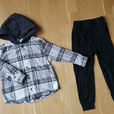 - Skjortejakke med hette og trykknapper fra Lindex i str 116 kr. 50,-