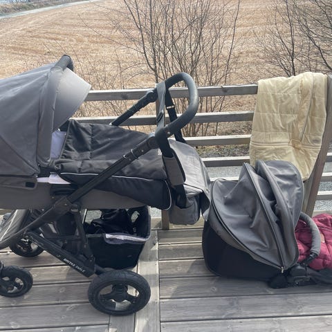 Dette er en fantastisk vogn som er veldig god å kjøre og enkel å håndtere. Lett å slå sammen og får plass i bagasjerommet. Forhjulene kan låses eller gå i alle retninger. Kjører både i skogen og på snø. Perfekt sovevogn til barnehage.