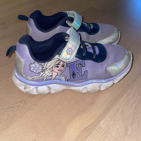 Blinkesko joggesko frozen/ frost i størrelse 24 selges for 100,- kroner. Skoene fremstår som pent brukt, lite brukt og uten noen form for anmerkninger. Kjøpt for 499,- hos Jollyroom.