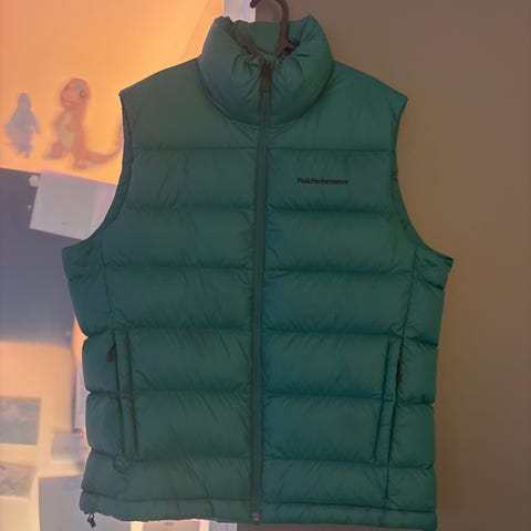 Selger en svært pent brukt PeakPerformance Helium Down Vest i størrelse Medium. Denne lette og varme dunvesten er perfekt for høst- og vintersesongen, enten du skal på tur, bruke den til hverdags eller som et ekstra lag under jakken.