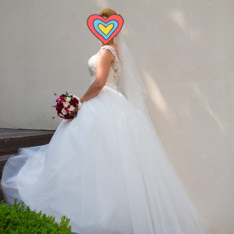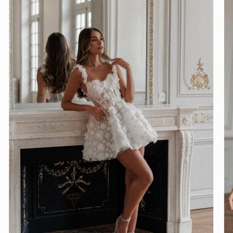 Selger kort brudekjole som jeg brukte som kjole nr 2 (second dress) under bryllupet. Kjolen er i fargen ivory og i str Small.