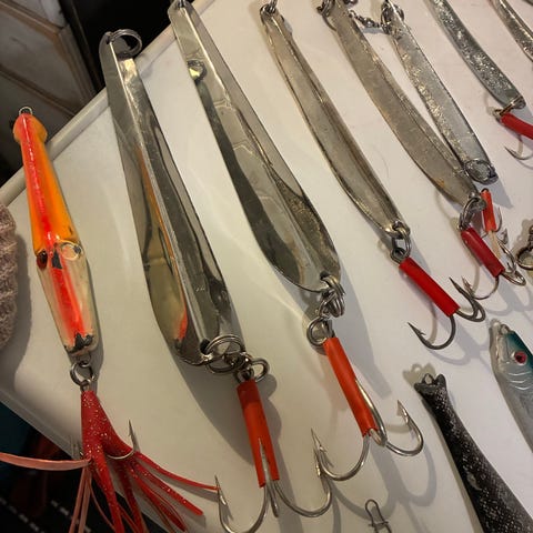 Har 9 stk store pilker på ca450gr,tilsalgs.de er for store for meg og mitt bruk.selges eller byttes i mindre pilker på 150-200 Gr.NB.pilkene er helt nye.Hvis intresse send mobnr.så sender eg bilde.