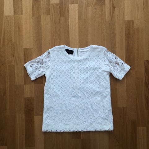 Ubrukt hvit topp fra Designers remix copenhagen, av Charlotte Eskildsen. Lappen henger på. Glidelås bak i nakken.