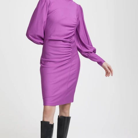 Selger nydelig kjole av 100% organisk bomull fra Designers Remix. Kun brukt en gang. Ingen skader. Tilpasset kjole med puffede ermer og plissédetaljer.