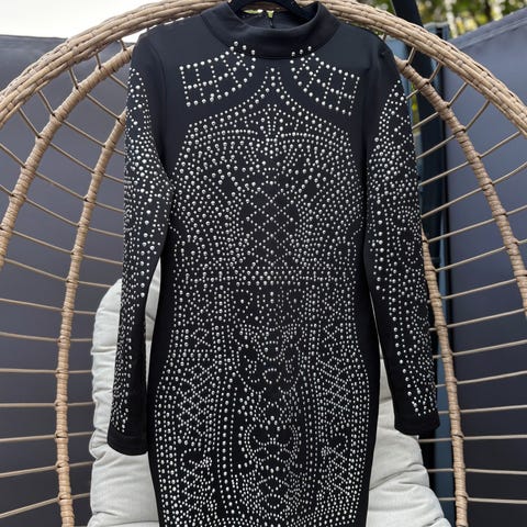 Lekker lang svart kjole med perler, bar rygg, og perler , brukt en gang og er som ny