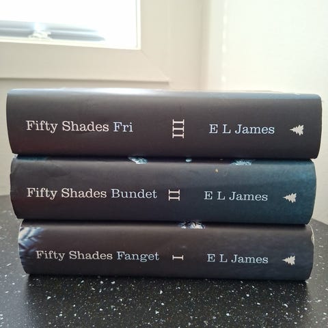 Norsk oversettelsen av E. L. James bøkene Fifty Shades of Grey. De tre bøkene fra Anastasias ståsted. Selges samlet.