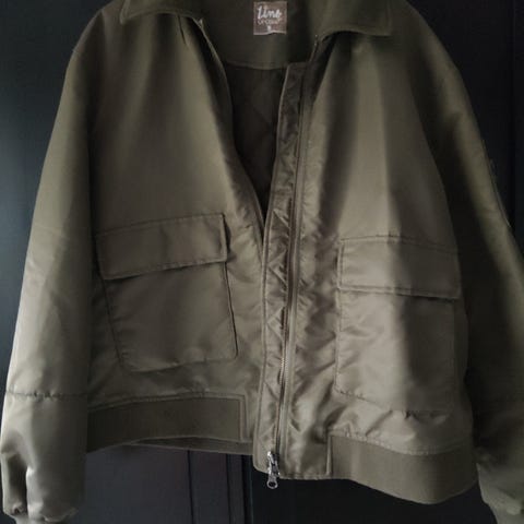 Jakke jeg fikk i gave som ikke blir brukt. På bilde ser jakken brun ut, men er dus militægrønn