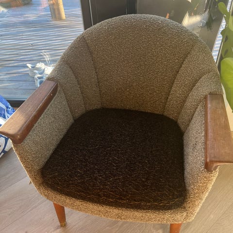 Sofastol selges. Trekket er håndsydd.