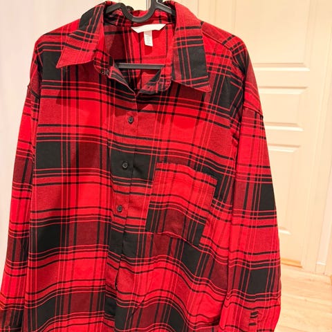 Oversized skjorte jakke i fin beige/stone farge i størrelse Medium/Large mrd hvit mønster. Behagelig fit og stoff, kun brukt et par ganger 🤍
