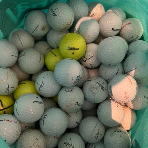 Blandete merker som top flite, slazenger, kirkland, bridgestone og pinnacle til 5,- kr pr. stk.