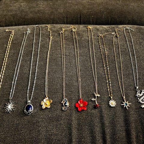 4. Halssmykke med anheng i grønn-blå farge, snor 70 cm