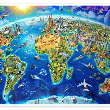 Selger lekkert verdenskart for barn med innramming og oppheng selges for 849kr Mål: 150 cm x 107 cm × 2 cm.