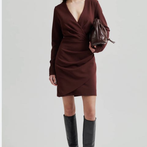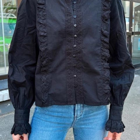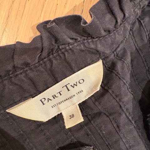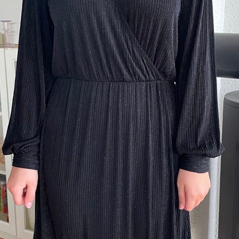 Knelang kjole fra Second Female selges fordi den er for stor. Brukt to ganger. Lysblå basefarge med svarte sømmer/broderier.