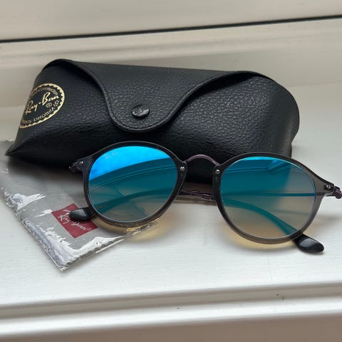 Flotte, nesten ubrukte Ray-Ban solbriller til dame. Ligger i originalt brilleetui. Sorte.og runde i innfatning