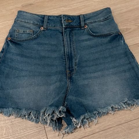 Selger pene dongerishortser fra H&M i størrelse 36. Modell med høy midje og bermudafasong. Veldig god stand – brukt svært lite.