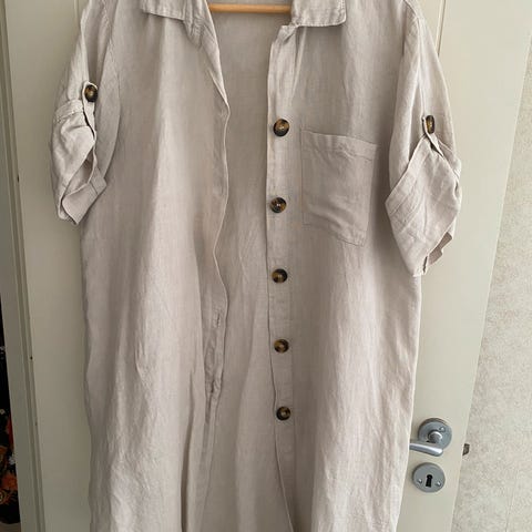 Langt skjorte. Brukt en gang. Lin. Under armene er 58 cm. Lengde er 94,5 cm. Jeg har en til med beige farge. Sender med post, ikke med helthjem. Tar vips.