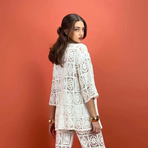 En lang modell, så går til ned over hoftene.